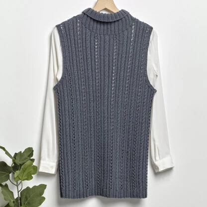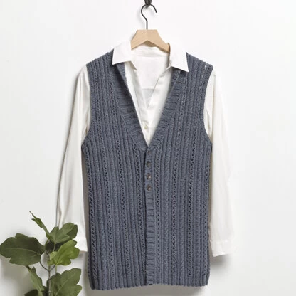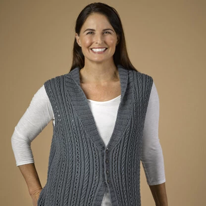 Valley Yarns Designer Series presents Rosebud, a women’s vest with alternating columns of lace and rib