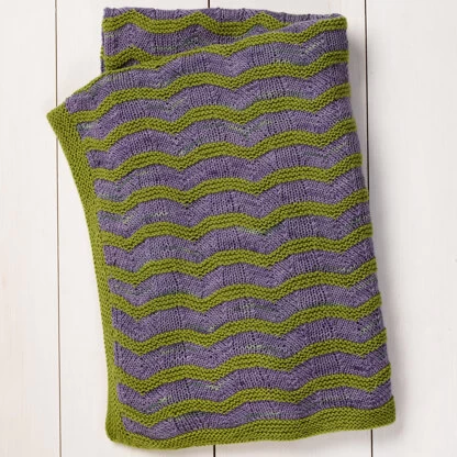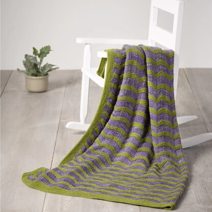 Valley Yarns Phoenix is a must-have blanket for your little one knit in Huntington and Huntington Splash. This blanket has the yarn do all the heavy lifting with this colorful and easy-to-knit piece. Phoenix is knit flat from the bottom up seamlessly with a ripple stitch pattern stripes in Huntington Splash, alternating with garter stripes of coordinating Huntington. Garter stitch borders in the solid color frame the piece. Valley Yarns Huntington is extremely soft and machine-washable, making it fantastic for this baby project. The ripple and garter stitch pattern is charted and written out.