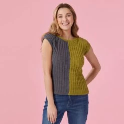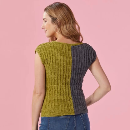 Valley Yarns Shenandoah is a striking vertical color-blocked women’s tee knit in Leverett. The color blocking is detailed on the front and the back with a simple seeded rib check texture. Shenandoah is knit in four equal pieces and then seamed, and a narrow garter stitch hems the bottom, sleeve edges, and neckline. Valley Yarns Leverett is a stay-cool blend of Pima cotton and linen that will work up beautifully into everything from tees to dishcloths! The Seeded Rib Check pattern is charted and written out.