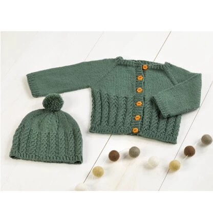Valley Yarns Nefud is a lovely baby’s cardigan and hat with a textured faux cable pattern knit in Haydenville DK, and the ideal gift for a new baby. Your little one will be comfy and trendy in this easy-to-knit layette set. The sweater is knit in one piece from the top down with raglan shaping for the sleeves. The button and buttonhole bands are picked up and worked in a k1, p1 rib pattern. The hat is knit in the round seamlessly from the brim to the crown. Valley Yarns Haydenville DK has a gentle sheen and crisp stitch definition ideal for cables and colorwork. The faux cable patterns are charted and written out.