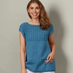 Valley Yarns Ginkgo strikes the perfect balance of an easy project and a finished piece that’s cute and comfortable. This beginner-friendly top has an A-line silhouette, ballet neck, and integrated cap sleeves that will be an easy go-to from spring through fall.