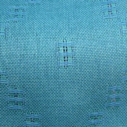 Valley Yarns Zephyr Shawl in 8-Shaft Atwater-Bronson Lace is a shawl designed to be a very lightweight fabric. The weft floats show the Aegean blue; warp floats on the reverse show Jade. In sunlight, the colors reflect some iridescence. The sett is lighter than the traditional sett for Zephyr, so you need to be careful with your beat, but the fabric is cloud-soft and perfect for its intended use.