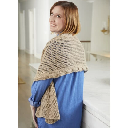 Valley Yarns Woodbridge Scarf/Wrap designed by Melissa LaBarre has a totally reversible cable and lace pattern that makes a light and airy layer of warmth, perfect for tossing around your neck at the change of seasons. The pattern includes instructions for a wide scarf (shown in sample) or wrap. This accessory is knit in Valley yarns Mount Holyoke, a light worsted weight 100% cashmere yarn with a next-to-skin softness that makes it perfect for this piece. The cable and lace pattern in written form only.